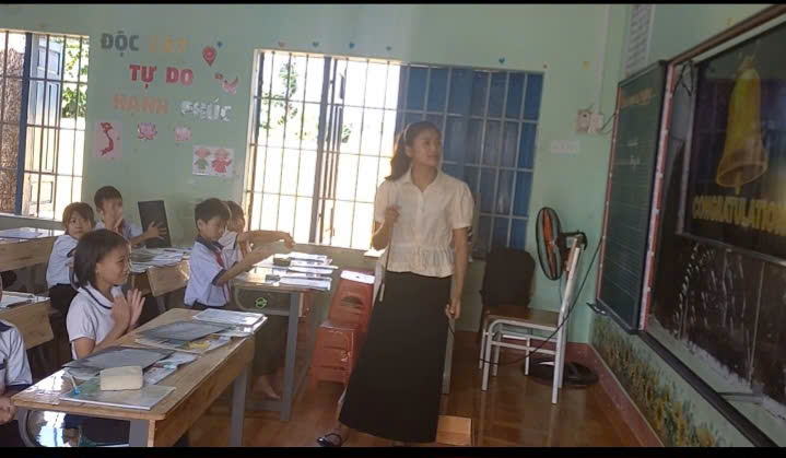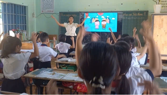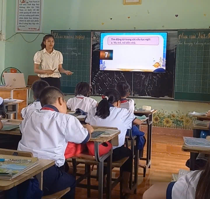 Trong tiết học, cô giáo Mai Thị Hồng Ngân đã tổ chức nhiều hoạt động học tập sôi nổi, hấp dẫn, giúp học sinh dễ dàng nhận biết và hiểu rõ về đặc điểm, tác dụng của động từ. Các em được thảo luận nhóm, tham gia trò chơi ngôn ngữ, tìm và đặt câu với các động từ quen thuộc trong đời sống hằng ngày.
