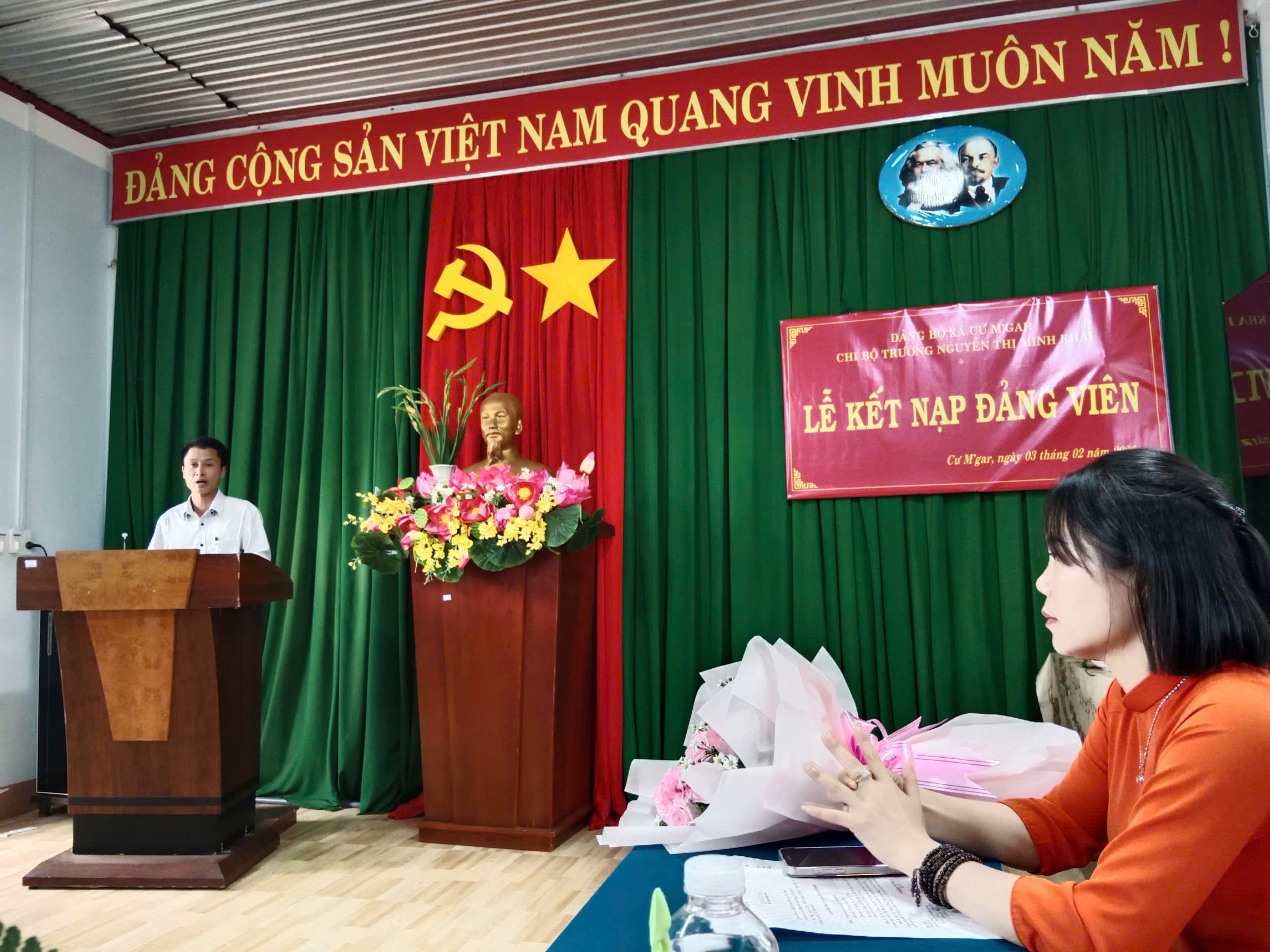 Tham dự buổi lễ có đồng chí Trần Ngọc Giang – Đảng ủy viên, Phó Ban Xây dựng Đảng xã Cư M’gar, phụ trách địa bàn, cùng toàn thể 12 đảng viên trong Chi bộ Trường Tiểu học Nguyễn Thị Minh Khai. Sự hiện diện của đồng chí thể hiện sự quan tâm sâu sát của Đảng ủy cấp trên đối với công tác xây dựng Đảng tại đơn vị trường học.