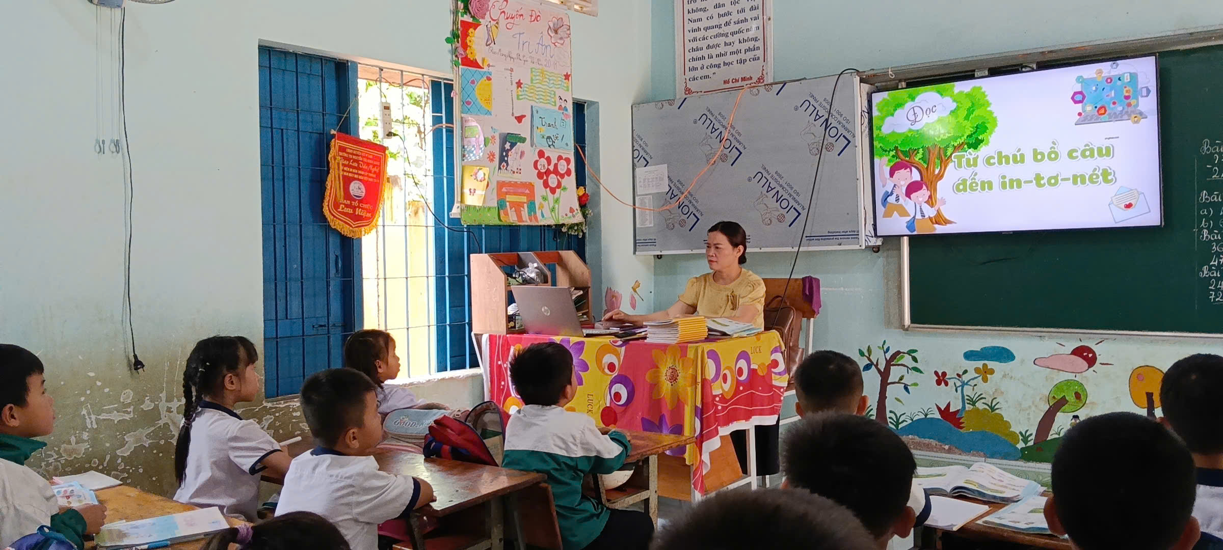 Song song với đó, nhà trường từng bước đầu tư cơ sở vật chất, đảm bảo hạ tầng công nghệ phục vụ dạy học như hệ thống internet, tivi, phòng tin học. 100% giáo viên sử dụng Thiết bị Tivi, ứng dụng CNTT trong dạy học, tiêu biểu như cô Mỹ, cô Ngân, cô Quyết, cô Na, cô Tĩnh, cô Thảo, cô Quyên, cô Tươi, cô Hóa, thầy Hà, cô Dung, … Đặc biệt, các tiết học Tin học được tổ chức bài bản, không chỉ giúp học sinh làm quen với công nghệ mà còn trang bị những kỹ năng số thiết yếu như tìm kiếm thông tin, học tập an toàn trên môi trường mạng, sử dụng các nền tảng số một cách hiệu quả.