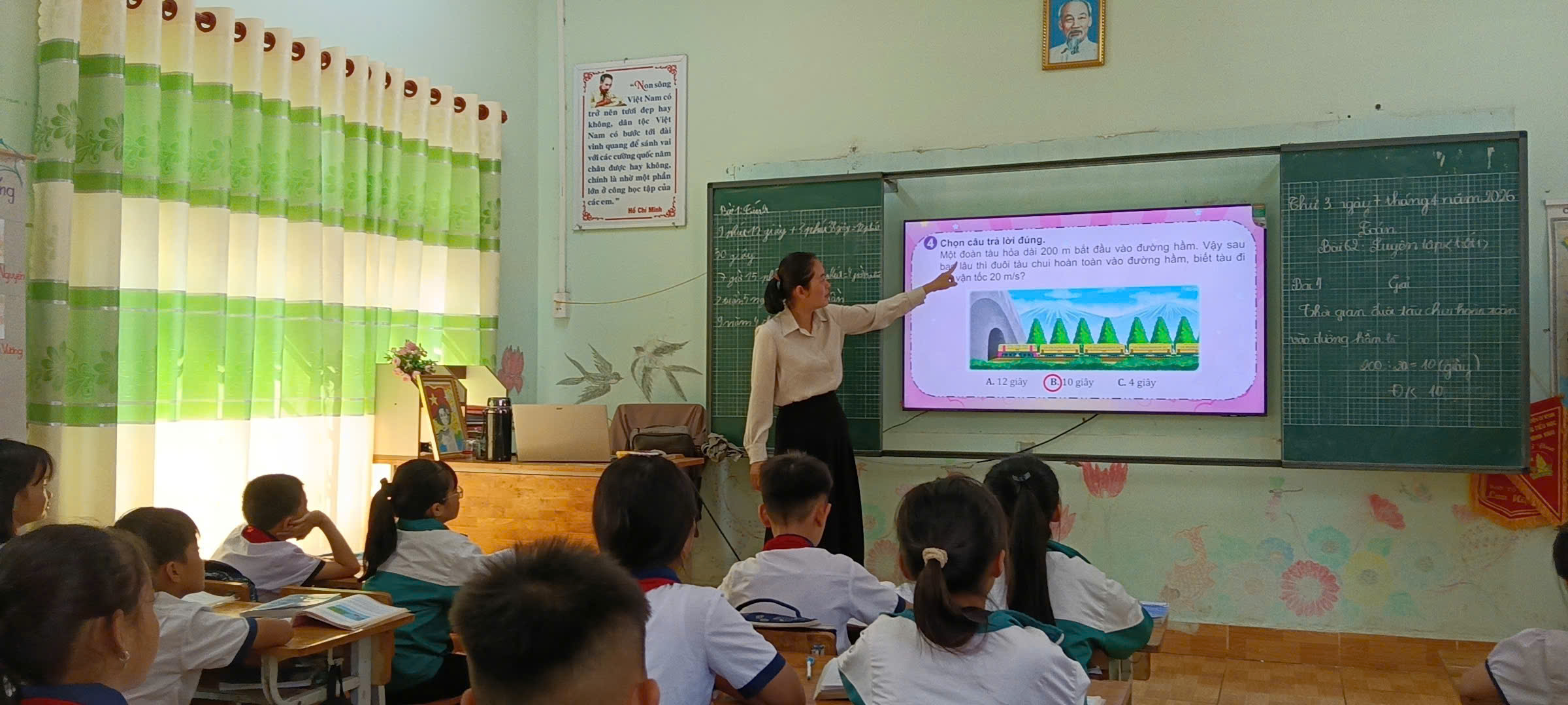 Bám sát tinh thần chỉ đạo “đẩy mạnh ứng dụng CNTT, chuyển đổi số trong dạy học và quản lý giáo dục; tăng cường giáo dục kỹ năng số cho học sinh” , nhà trường đã triển khai nhiều giải pháp đồng bộ. Đội ngũ giáo viên chủ động đổi mới phương pháp giảng dạy thông qua việc ứng dụng bài giảng điện tử, sử dụng video trực quan, phần mềm học tập và các nền tảng số. Nhờ đó, các tiết học trở nên sinh động, hấp dẫn hơn, giúp học sinh tiếp thu kiến thức một cách tự nhiên, hiệu quả.