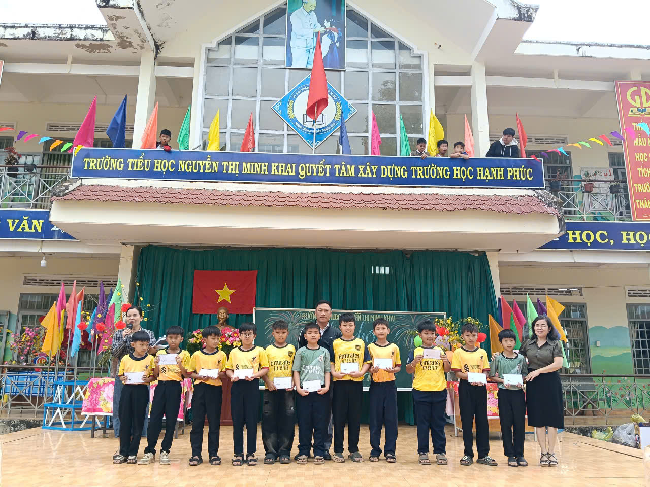 - 11 học sinh đội bóng tham gia thi đấu được khen thưởng (100.000 đồng/em)