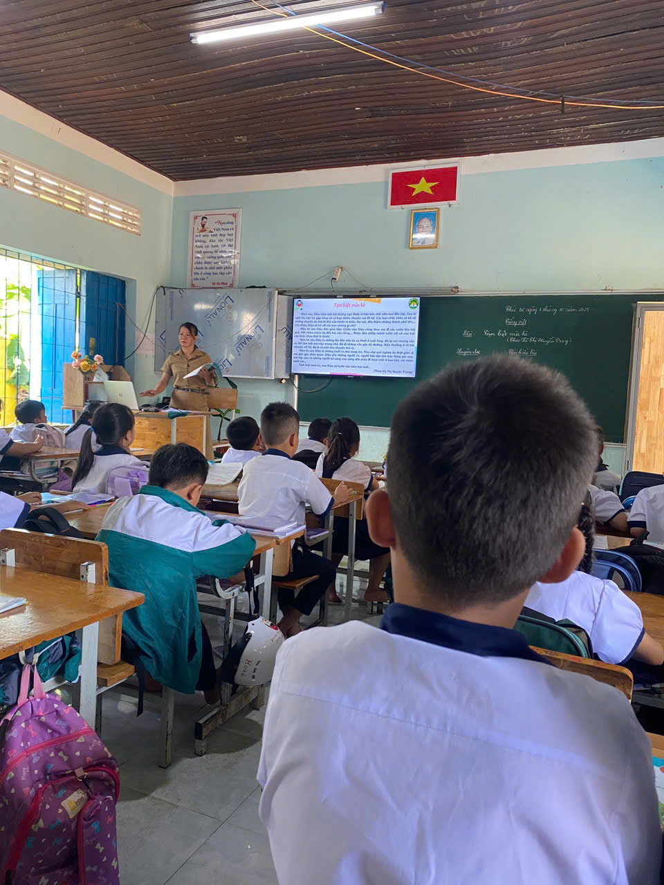Ngay từ những phút đầu, lớp học như bừng sáng trong không khí háo hức của ngày đầu tháng 10 – thời điểm học trò vẫn còn vương vấn những dư âm của mùa hè vừa qua. Giọng đọc truyền cảm của cô Tĩnh dẫn dắt học sinh bước vào dòng hồi tưởng nhẹ nhàng của cô bé Diệu trong đêm trước ngày khai giảng. Bằng lời văn mượt mà và cảm xúc, bài đọc gợi lại hình ảnh một mùa hè không sôi động náo nhiệt mà thiết tha, lắng đọng và chan chứa yêu thương – nơi mỗi kỷ niệm đều được nâng niu như cánh hoa phượng cuối cùng còn sót lại trong sân trường.