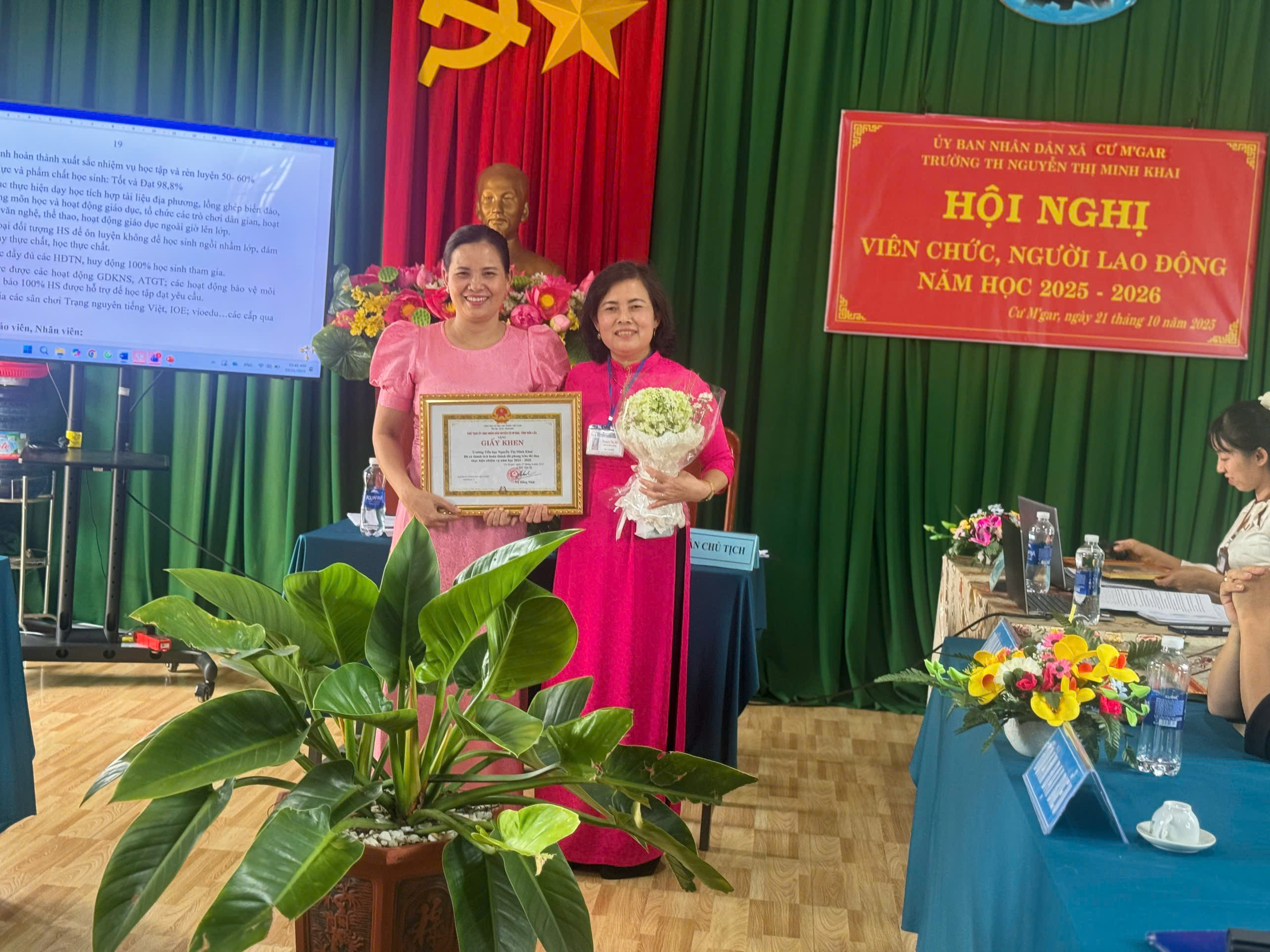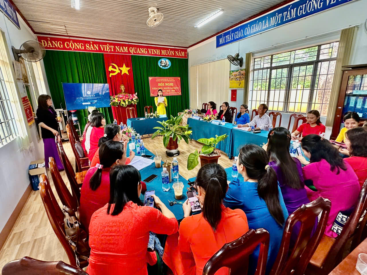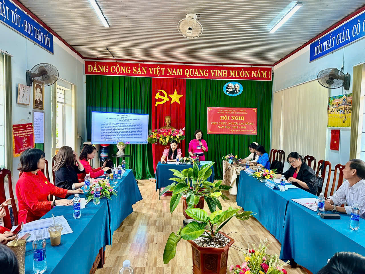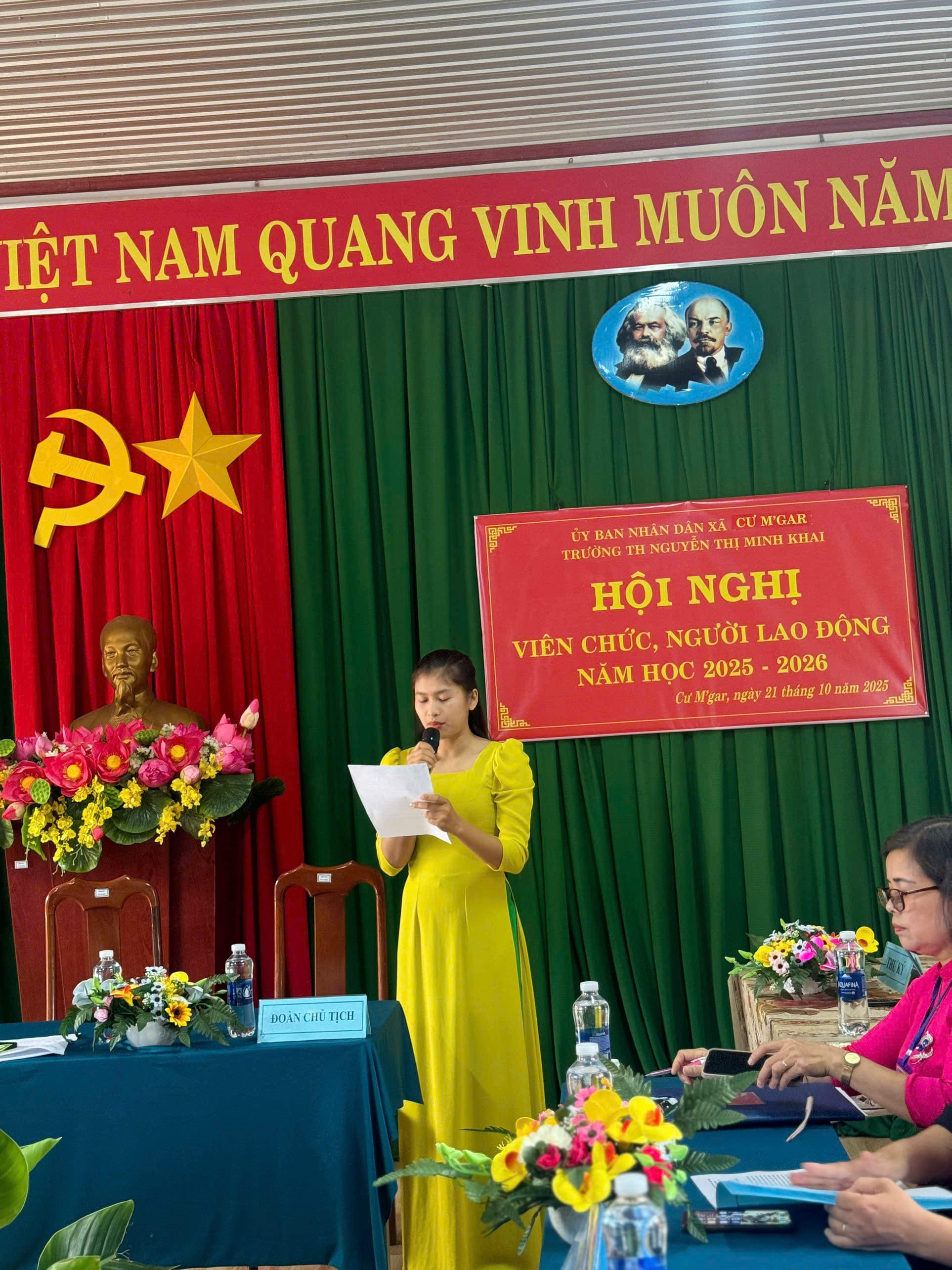 Hội nghị viên chức, người lao động là một trong những hoạt động trọng tâm đầu năm học, góp phần phát huy dân chủ trong nhà trường, tạo sự đồng thuận, thống nhất cao trong việc triển khai nhiệm vụ năm học. Hòa trong không khí thi đua sôi nổi đầu năm, sáng ngày 21/10/2025, Trường Tiểu học Nguyễn Thị Minh Khai đã long trọng tổ chức Hội nghị viên chức, người lao động năm học 2025 – 2026. Đây là hoạt động thường niên quan trọng, nhằm đánh giá kết quả thực hiện Nghị quyết hội nghị năm học trước, đề ra phương hướng, nhiệm vụ và các giải pháp trọng tâm cho năm học mới, đồng thời phát huy vai trò làm chủ, tinh thần đoàn kết của toàn thể cán bộ, giáo viên, nhân viên nhà trường.